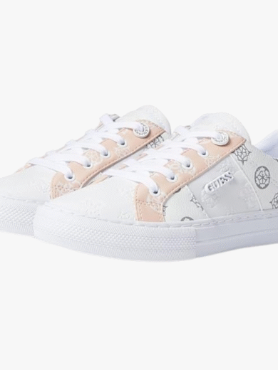 GUESS Women's Loven Sneaker, White/Pink
